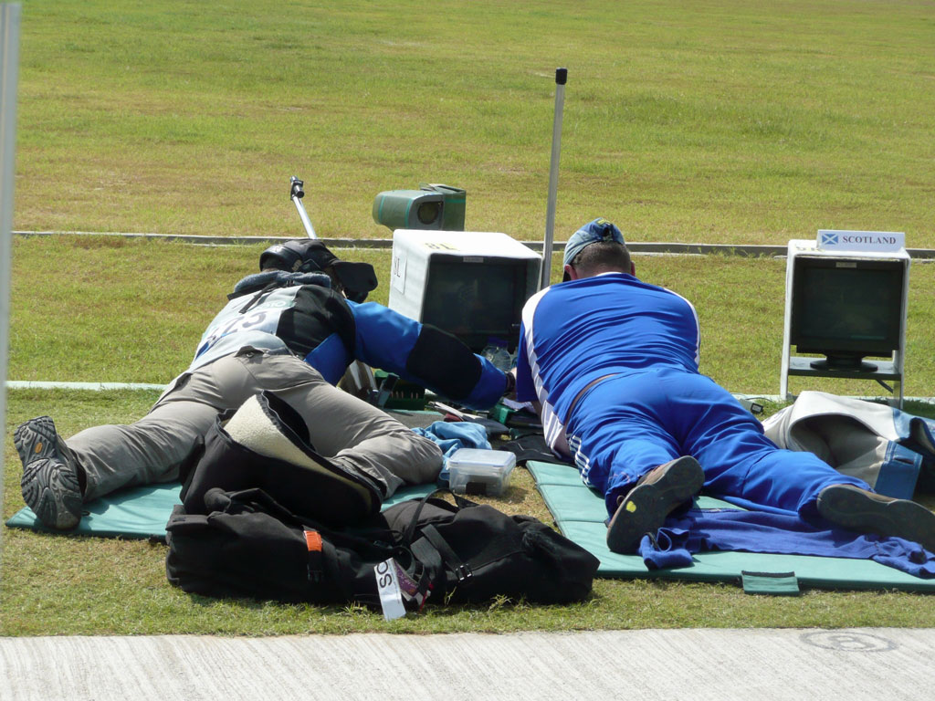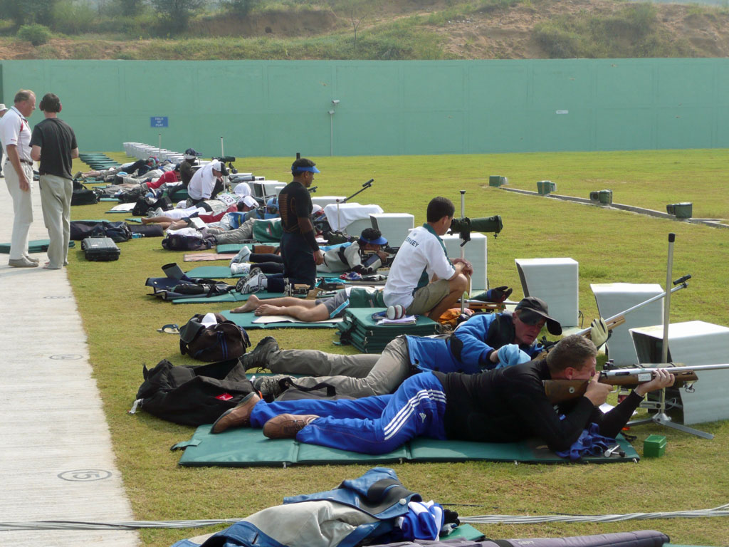 Siver medals for Shona Marshall of clays and Jon Hammond of smallbore today. Congratulations to them both. At Kadarpur, Ian and Angus got their Pairs Match off to a good start with a 50.3 and 50.4. Only South Africa bettered that and no other teams were clean. In the Individual Match, Angus suffered the consequences of a loose in 300X Stage1, dropping two points before tightening for 300X Stage 2 in which he made 50.6. Ian made life difficult for himself with a shot on the wrong target in Stage 1, in spite of which he never strayed from vee or bull all day, making 50.5 in 300X Stage 2 to finish the day on 5 off. Had this been the same target as was used in 2006, that would have been it – goodnight Vienna. With the tighter ICFRA target, however, and the difficulty in getting a decent sight picture on account of the haze and lack of contrast, especially at the longer ranges, there is still the possibility of doing something. As I said to him, should he drop no more points between now and the end of the match in four days’ time, he’ll be in with a very strong shout.